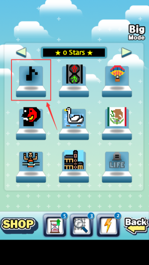 2、选择红框音乐符号图标,进入音效主题解谜关卡。