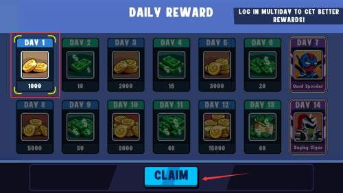 4、点击红框CLAIM蓝色按钮,领取每日登录奖励物品。