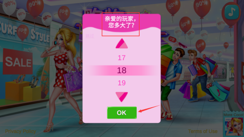 2、选择红框18岁年龄,点击绿色OK按钮确认。