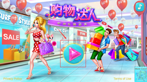3、点击蓝色播放按钮,开始时尚购物挑战。