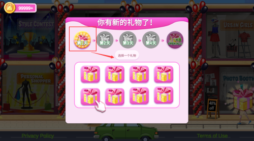 4、领取红框第一天礼物,选择粉色礼盒奖励。