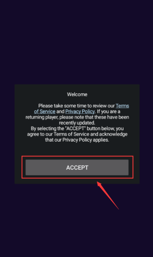 1、点击红框ACCEPT按钮,同意条款开始游戏。