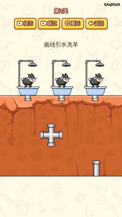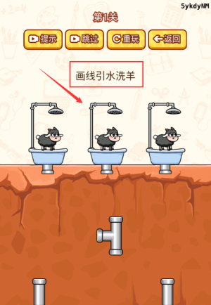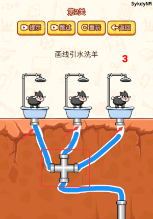 4、在红框水管交汇处画线,同时清洗三只羊过关。