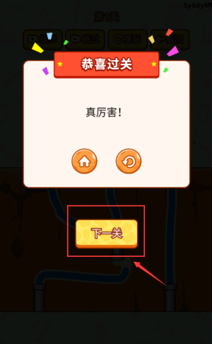 3、点击红框黄色下一关按钮,进入第二关挑战。