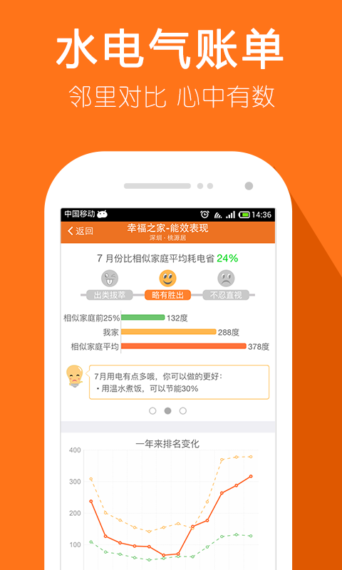 邻里对比:除了分析自家的数据,还会对比分析相似家庭的能耗数据,了解自家情况,有需要可以及时作出调整安排