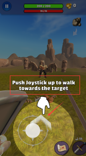 4、向上推动白色摇杆,控制角色朝目标方向移动。