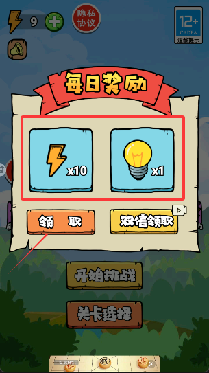 3、开始游戏前,我们可以领取每日奖励获得体力。