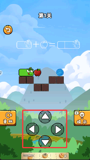 4、开始游戏后,通过下方操作轮盘移动小蛇,吃掉苹果即可过关。