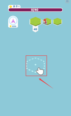 2、点击红框虚线圆圈区域,放置第一个建筑地块。