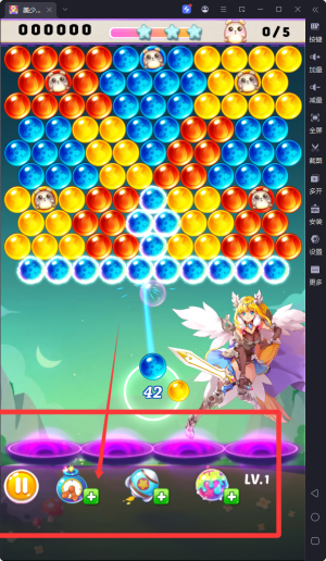 2、游戏中设有多种特殊泡泡和功能道具,如炸弹泡泡可一次性消除周围多个泡泡,彩虹泡泡能消除任意颜色,玩家需灵活运用。