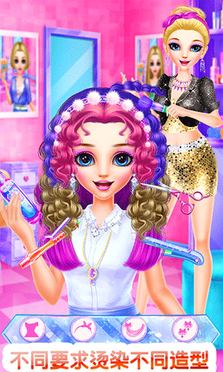 2、烫染美发流程高度还原真实美发店体验,玩家需先为顾客进行清洁护理、吹干造型,然后选择合适烫发或染发方案,体验专业手法。