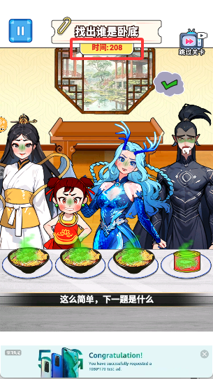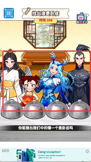 3、根据四人所吃的食物,找出一个卧底,即可进入下一步。