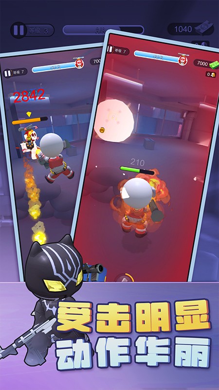 1、卡通渲染风格搭配快节奏射击,打造出独特视觉体验。鲜艳色彩与夸张特效完美结合,让每场战斗都充满活力。
