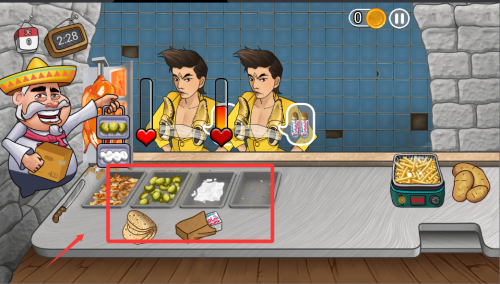 1、开局先熟悉食材选择和制作流程,按照顾客需求快速完成煎饼制作,注意控制火候与配料搭配。