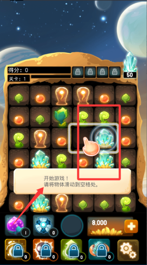 1、开局先跟随教程熟悉点击规则与操作方式,理解消除机制后再进行闯关。