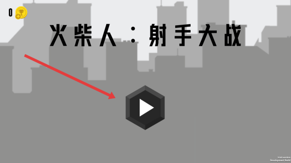 1、在火柴人:射手大战主界面,根据箭头指示点击黑色播放按钮,进入阶段选择页面开启射击对战。