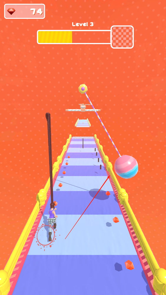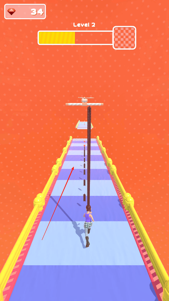 2、前进的同时注意躲避前方不停摇摆的障碍物,保护已经收集到的长发,左侧的钻石偏多,可以走左侧的路。