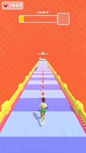 1、点击屏幕开始游戏,滑动操纵角色在赛道上收集头发碎片,收集的同时收集赛道上分布的钻石。