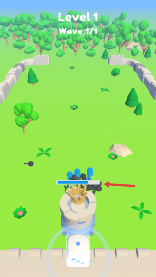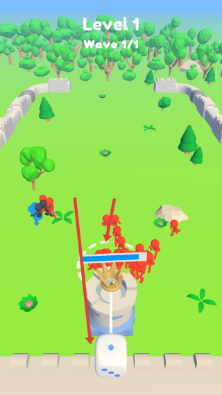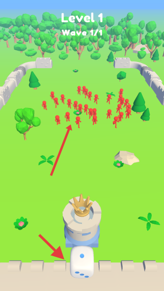 1、Level1Wave1/1,点击下方骰子,投掷召唤士兵,抵御红色敌人进攻城堡。