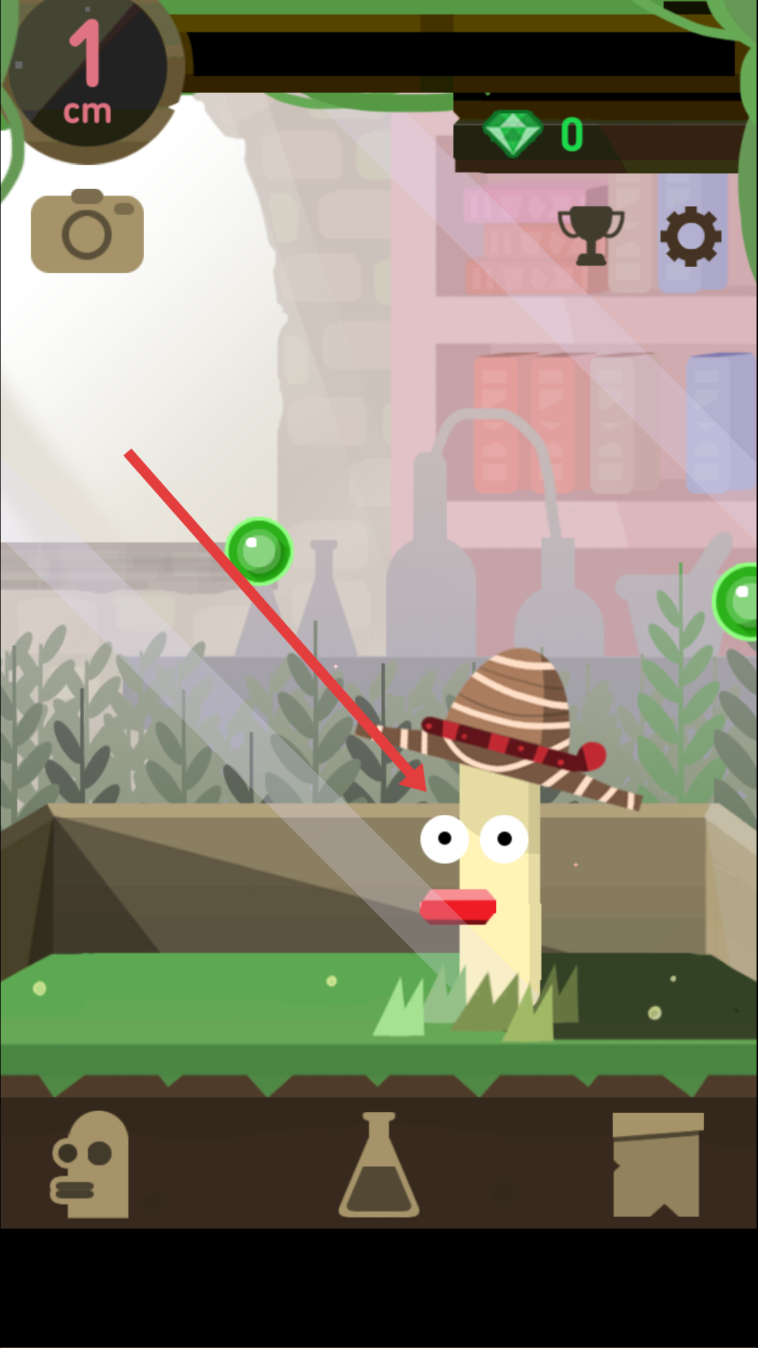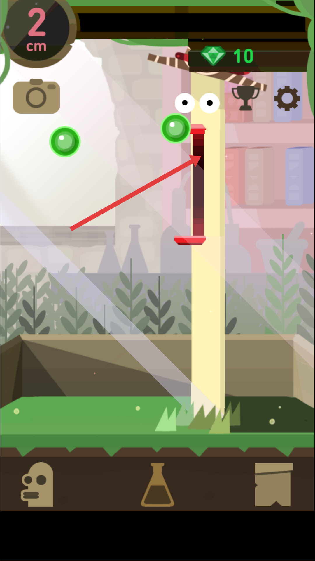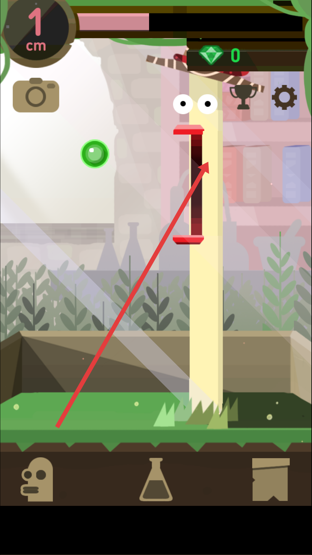 1、进入游戏后,通过操作让角色伸长身体,尽可能收集场景中的绿色泡泡等道具,收集道具可获得钻石等奖励。