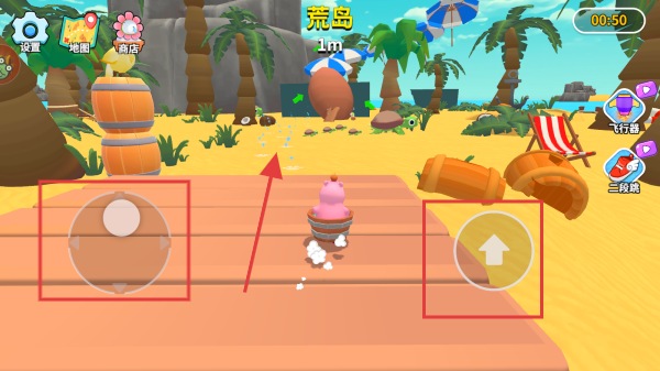 1、进入游戏后,在游戏界面左侧有方向控制按钮,右侧有向上箭头按钮,利用这些按钮操控角色在场景中移动,探索周围环境。