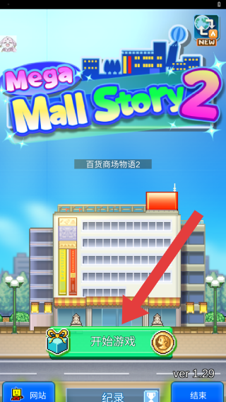 1、可看到开始游戏按钮,点击后方可进入场景进行游玩,是模拟经营类的玩法,玩家将打造百货商场。