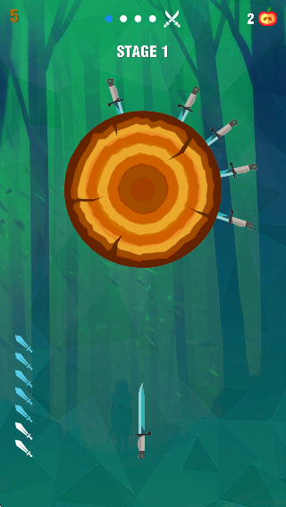2、操作简单易会:核心操作是投掷飞刀击中目标,没有复杂步骤,新手也能快速学会,可专注于提升投掷精准度,享受闯关的轻松氛围。