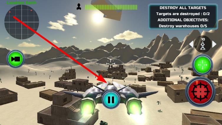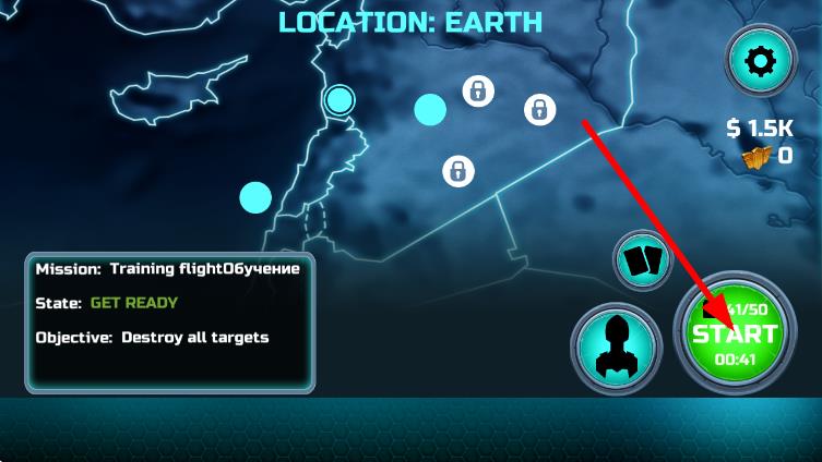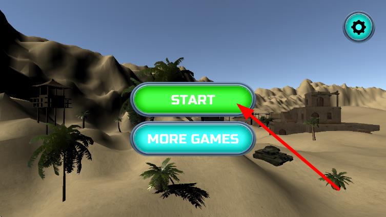 1、在沙漠场景主界面,我们将点击绿色START按钮,进入任务地图,准备空战。