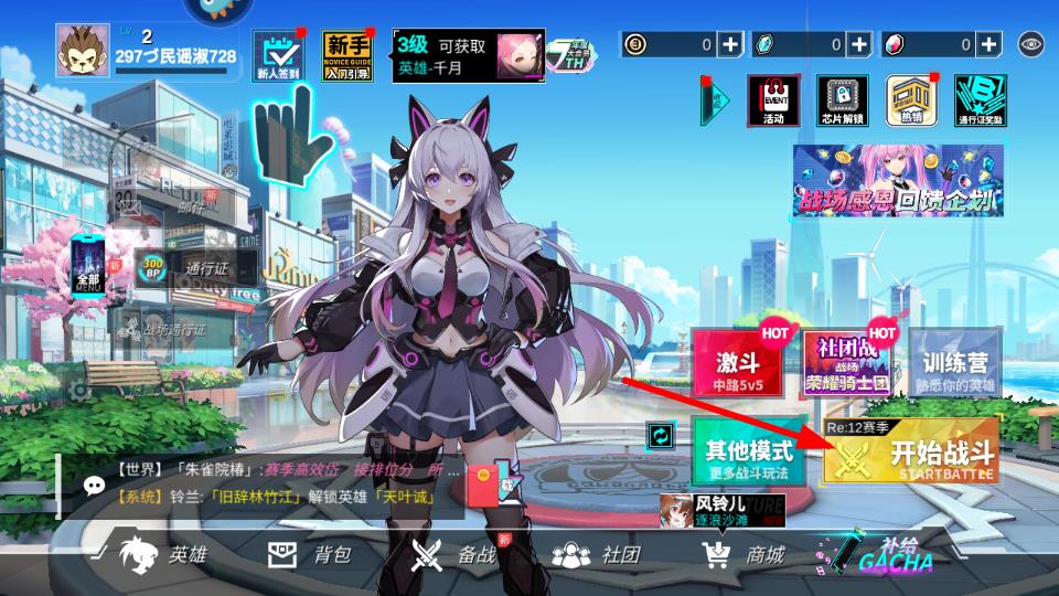 1、进入游戏后选择对战模式,从海量二次元角色中挑选适合自己的英雄,根据角色定位分配上路、中路、下路或打野位置,进入战场后了解基本操作与技能释放方式。