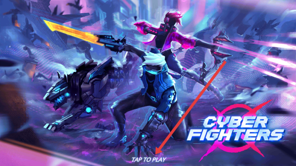 1、进入游戏初始界面,通过点击屏幕底下TAP-TO-PLAY,开启赛博格斗冒险,操控角色投身战斗。