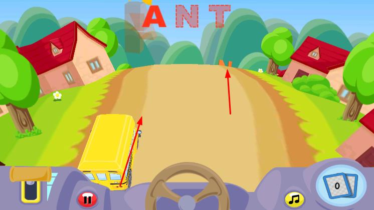 2、在游戏场景中,通过模拟驾驶,根据画面提示,如字母ANT,收集字母,完成道路上的字母任务。