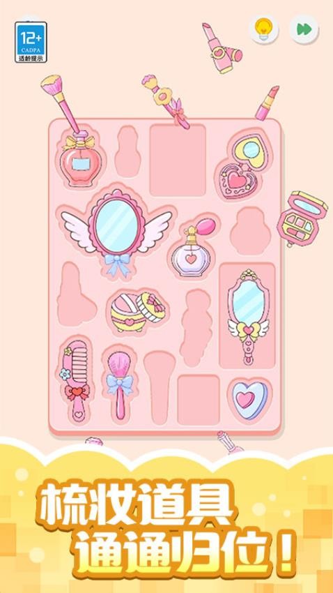 2、丰富多样的场景收纳挑战系统,涵盖厨房厨具、梳妆台化妆品等多个生活场景,每个场景都设有独特的收纳规则和挑战要点。