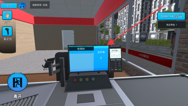 3、在超市收银台场景中,熟悉收银机的操作界面,为后续的超市经营和收银操作做好准备。
