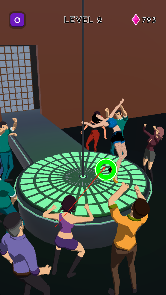 3、趣味动作机制:核心机制围绕钢管体操动作展开,通过控制手臂和腿部的张合完成杂技表演,动作设计贴合钢管舞艺术,兼具趣味性与挑战性。
