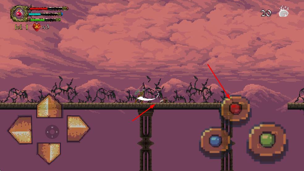 3、留意角色的生命值和分数变化,合理运用攻击技能,应对不同的敌人和场景,努力在冒险中生存并获得更高分数。