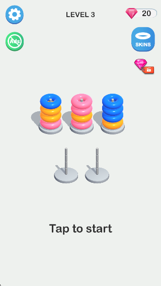 1、进入拼图场景,观察彩色篮圈的初始分布,尝试移动篮圈,感受拼图的基本操作和难度。