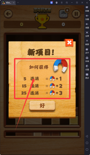 2、游戏采用经典三消机制,将三个相同颜色的积木连成一线即可完成消除,操作简单直观易上手。