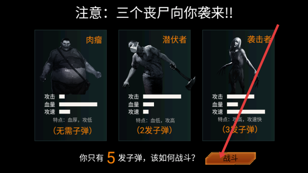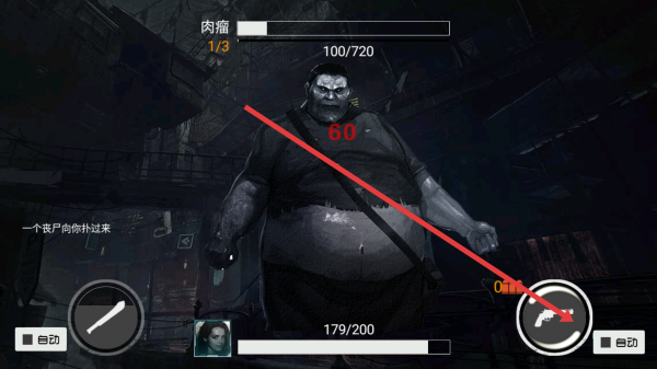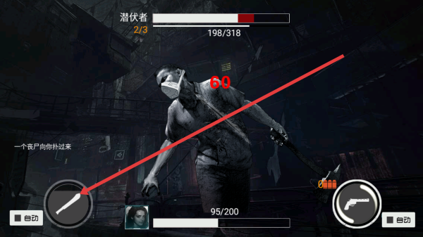 2、在战斗过程中,点击右下角的手枪按钮,选择合适的时机进行射击,连续点击减少丧尸能量条。