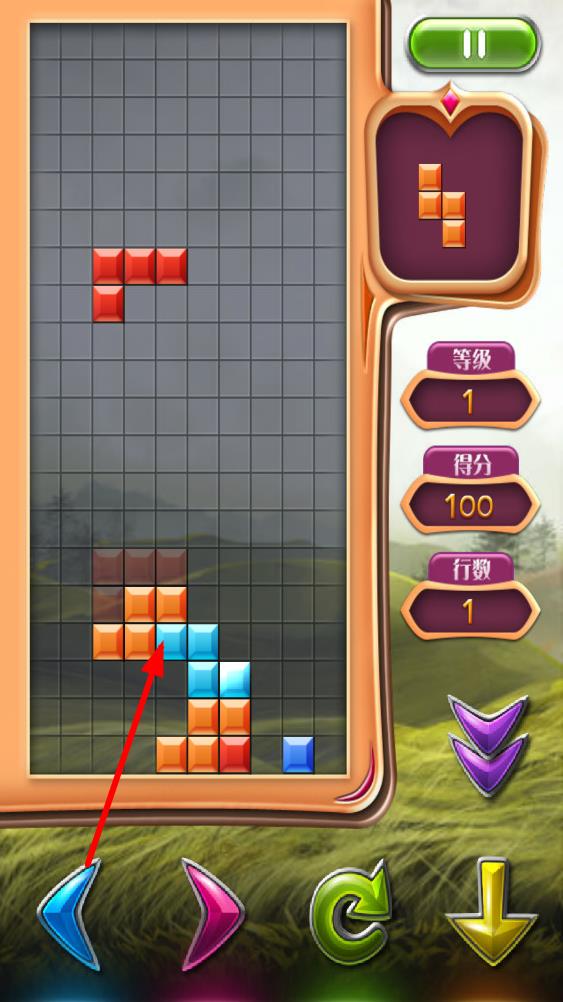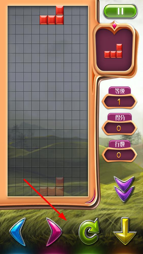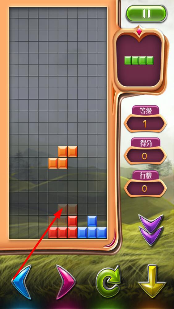 1、观察初始下落的方块,通过虚拟键盘操控其移动或旋转,将首个方块放置在合适位置,开始积累消除行数。