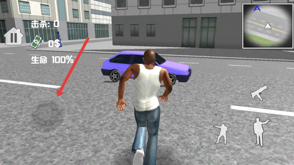 3、进入到游戏场景,滑动左侧方向键操控角色在街头移动,留意界面信息,准备应对敌人展开战斗。
