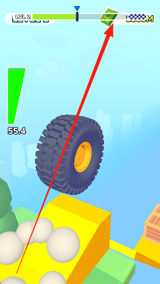 2、在闯关途中灵活操控车轮,躲避大量障碍物,保护车轮不受撞击,持续向通关目标前进。
