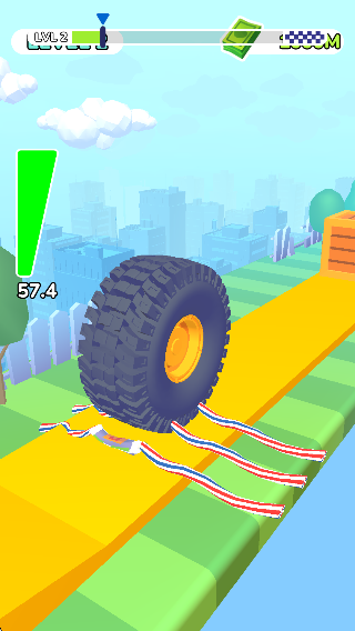 3、操作简单易掌握:整体操作方式十分简单,核心是操控车轮躲避障碍,新手能快速学会并掌握技巧,可专注于躲避和闯关,减少上手压力。