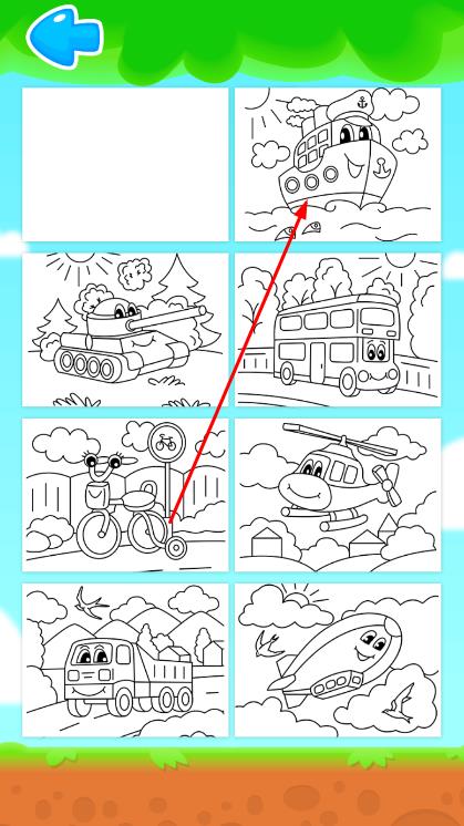 1、进入游戏,在图案选择界面点击想要填色的运输工具图案,进入填色页面。