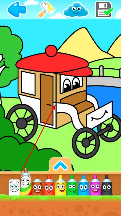 2、填充色彩与尝试创作:点击线稿中的空白区域,颜色会自动填充,也可滑动手指大范围涂色,尝试混合颜色创造新色调,为交通工具设计独特的色彩搭配。