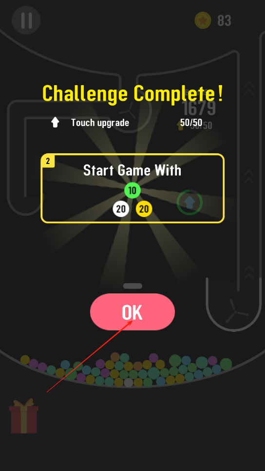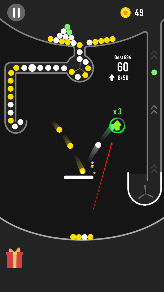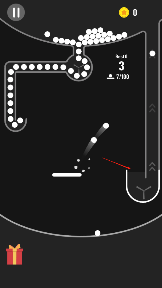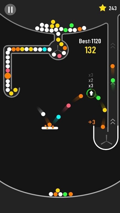 3、持续让小球在循环中反弹,避免掉落出规定范围,当小球成功完成多次循环并达到一定分数后,即可通关当前关卡,解锁更具难度的新关卡。