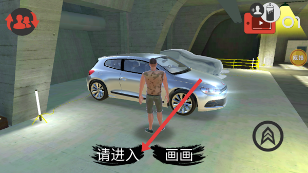 1、在初始选车的场景中,需要使用虚拟托盘控制角色选择自己的车辆,然后点击请进入的按钮。