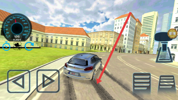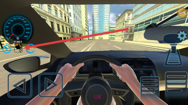 2、进入驾驶的阶段后,通过虚拟按键操控车辆在道路行驶,留意自己的车速与行驶轨迹。