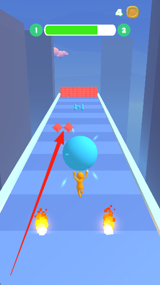 2、带着橡皮人在跑道上奔跑,及时发现并合理避开障碍物,保持速度向终点方向前进。