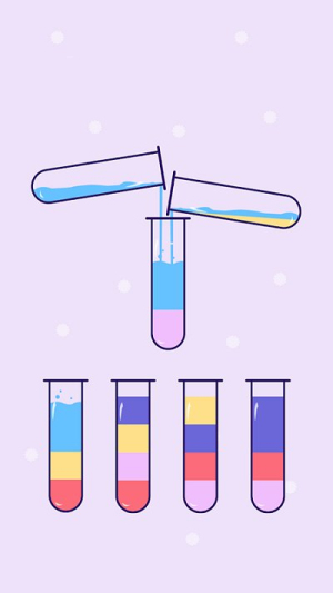 1、游戏传承经典水排序机制,玩家通过拖拽操作将不同颜色的液体精准倒入对应容器,简洁明了的规则设计让全年龄段玩家都能快速掌握游戏精髓。