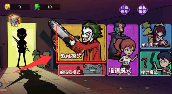 2、进去游戏有3个模式选择,选择躲藏模式。